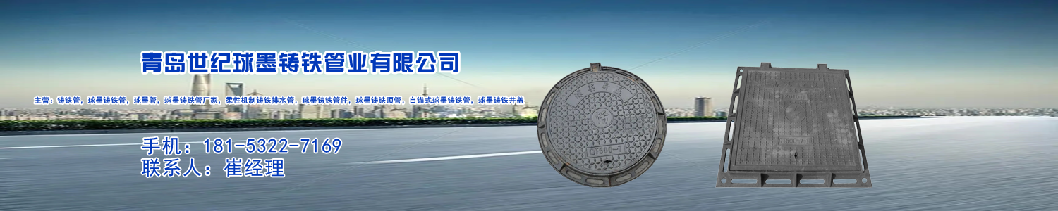 青島世紀球墨鑄鐵管業有限公司主營DN80mm~DN2600mm球墨鑄鐵管,給排水球墨鑄鐵管,球墨鑄鐵頂管,自錨式球墨鑄鐵管,球墨鑄鐵保溫管,球墨鑄鐵管件,柔性排水鑄鐵管,球墨鑄鐵井蓋,雨篦子等產品。我公司實力雄厚,常備萬噸庫存,貨源充足,規格齊全,發貨速度快!    青島世紀管業嚴格執行“精益求精,增強顧客滿意;精益求進,實現持續發展”的質量方針,建立起完善的售前咨詢、售中安裝、售后回訪服務體系,真誠地與用戶建立起長期密切合作關系。優異的產品和良好服務受到廣大用戶的青睞,是您值得尊敬和信賴的合作伙伴。   青島世紀球墨鑄鐵管業始終堅持“誠信立業,追求卓越,合作共贏,共同發展”,竭誠歡迎各界朋友來廠參觀指導,洽談業務。我們愿與您攜手共進,互惠雙贏,共創未來!...